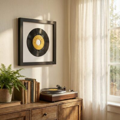این تابلو دکوراتیو خاص، ترکیبی از نوستالژی، اصالت و طراحی مینیمال است که با استفاده از یک صفحه گرامافون کاملاً آنتیک و اصل ساخته شده و جلوه‌ای متفاوت و هنری به فضای شما می‌بخشد.