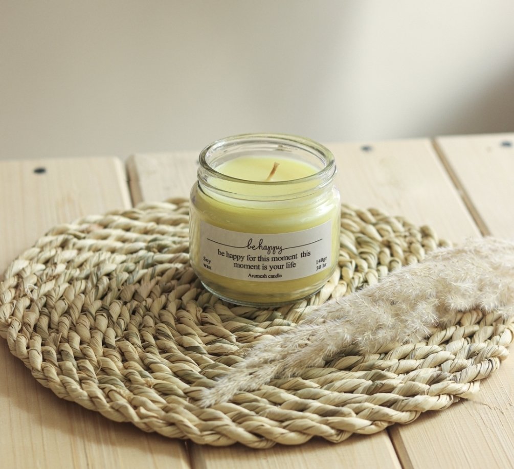 ویژگی‌های محصول شمع شیشه ای زرد هپی